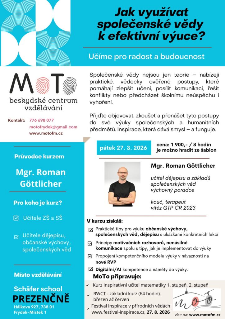 Přijďte objevovat, zkoušet a přenášet tyto postupy do výuky společenských a humanitních předmětů.